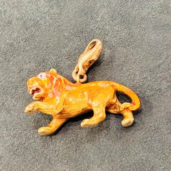 Löwe Anhänger 18 kt Gold/ Email