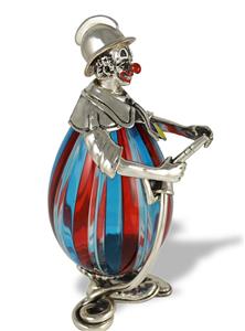 Murano Glas Clown, Feuerwehrmann, Ölspender, das Öl wird beim abnehmbaren Helm eingefüllt und kommt dann durch den Feuerwehrschlauch heraus.